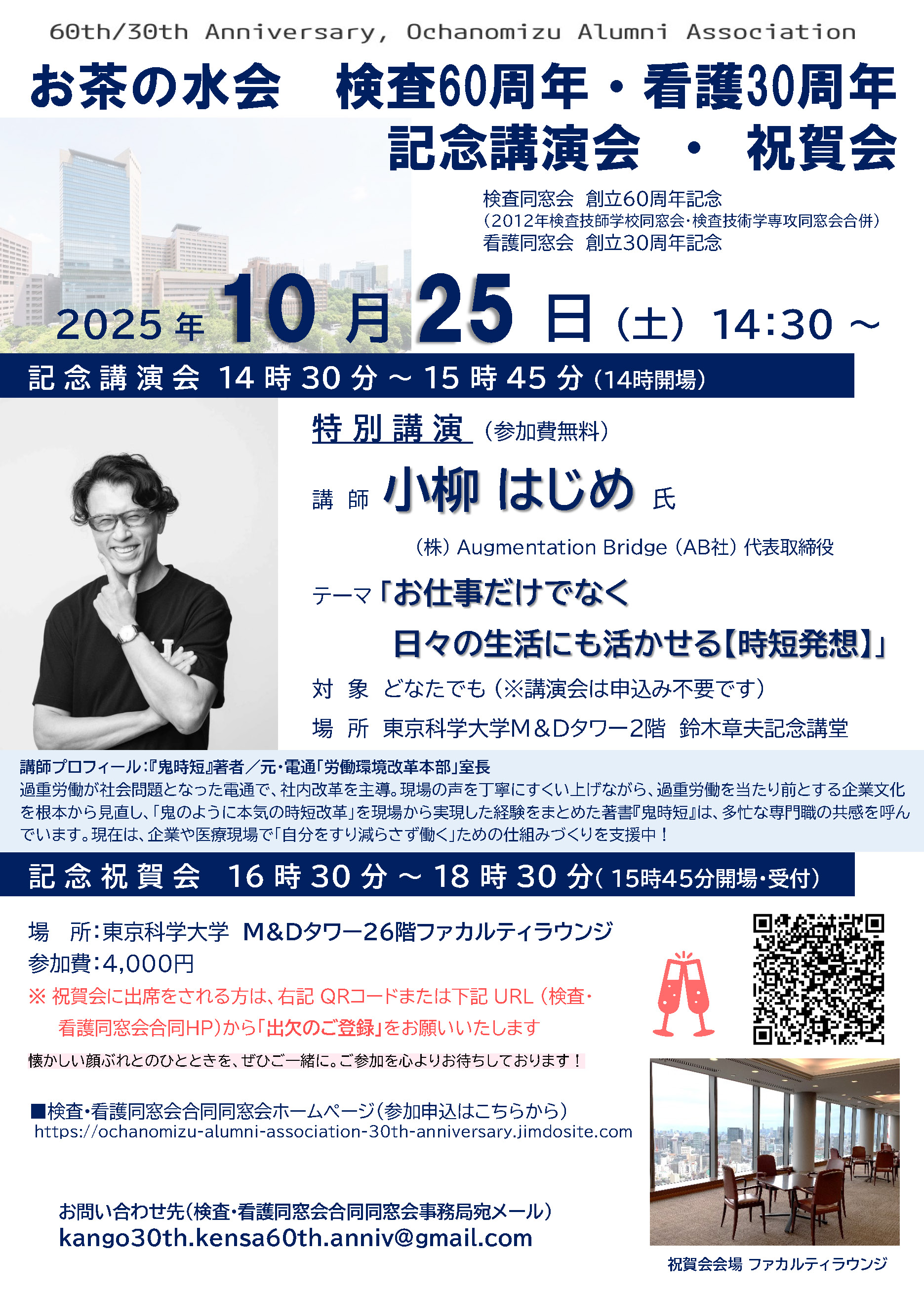 お茶の水会 検査60周年・看護30周年記念講演会・祝賀会の開催について